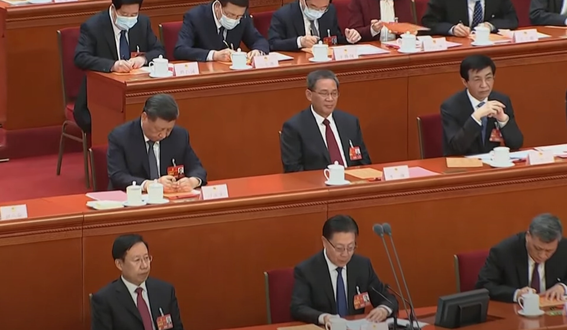 李強今日(11)日出席第十四屆全國人大會第四次全體會議(影片截圖)根據憲法,國家主席習近平提名李強為國務院總理人選。十四屆全國人大一次會議11日上午舉行全體會議,會上宣讀了習近平的提名信。